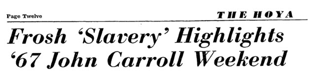 Meanwhile, racist tropes and practices persisted during this era of continued civil rights activity led by African-Americans and (perhaps new) attention to civil rights from white society. For example, throughout the 1960s, a “slave auction” featuring upper class male students and visiting students from local women’s schools bidding on the services of freshman was part of the annual John Carroll Weekend to kick off the new school year.