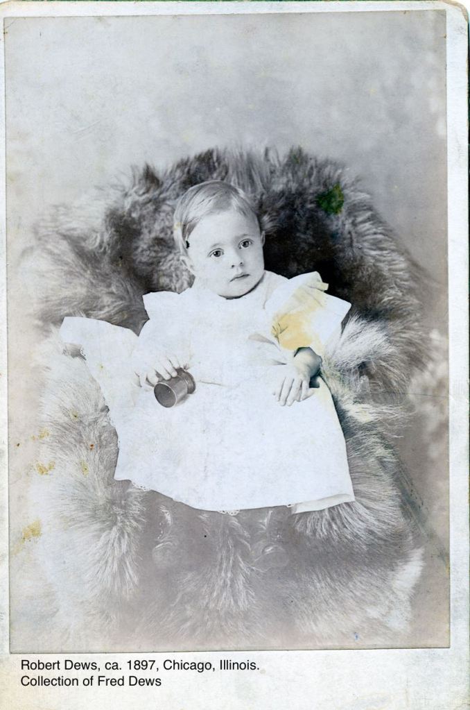 The second favorite find is rather sad, though, but related closely to this one. My grandfather was born a twin, a fact not even his sons knew until I found his birth certificate in the Cook County archives. (And, I’ll note, these records continue to not be available online, and even the Cook County Birth Certificates Index, 1871-1922, does not list all these children.) The twin brother’s name was Robert, after their father. However, baby Robert did not survive long enough to be enumerated on the 1900 Census, taken just eight months later in June. And on top of that, this was the second baby of that name that Robert and Nellie Dews had lost. Their first son Robert was born in September 1896 (pictured at left). He must have passed away prior to his namesake’s birth in October 1899.